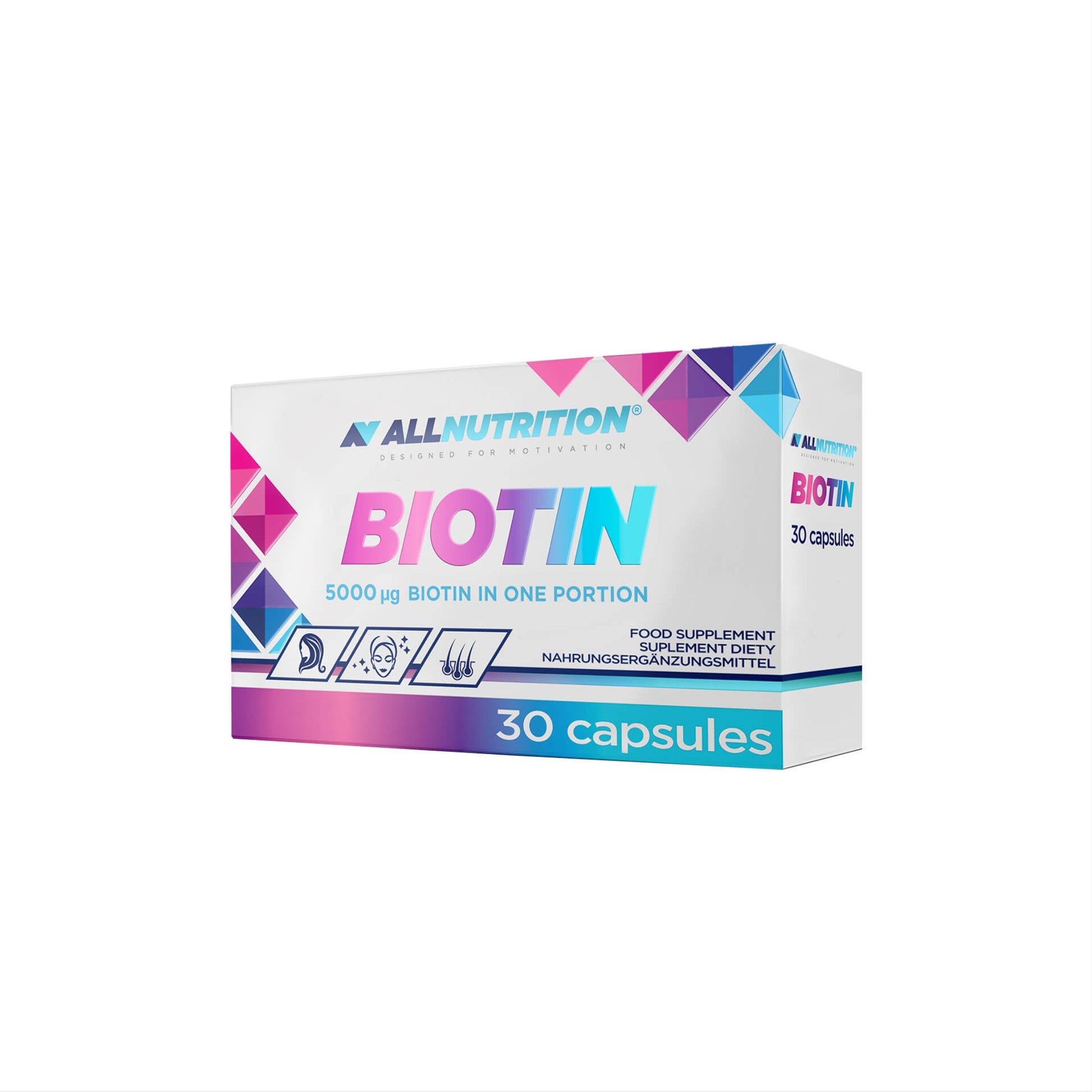 Allnutrition Biotin versorgt dich mit 5 mg Biotin pro Kapsel zur Unterstützung von Haut, Haaren und dem Nervensystem. Das Nahrungsergänzungsmittel reicht für eine Monatspackung und eignet sich ideal zur täglichen Anwendung. Perfekt für alle, die ihre natürliche Schönheit und Vitalität fördern wollen.
