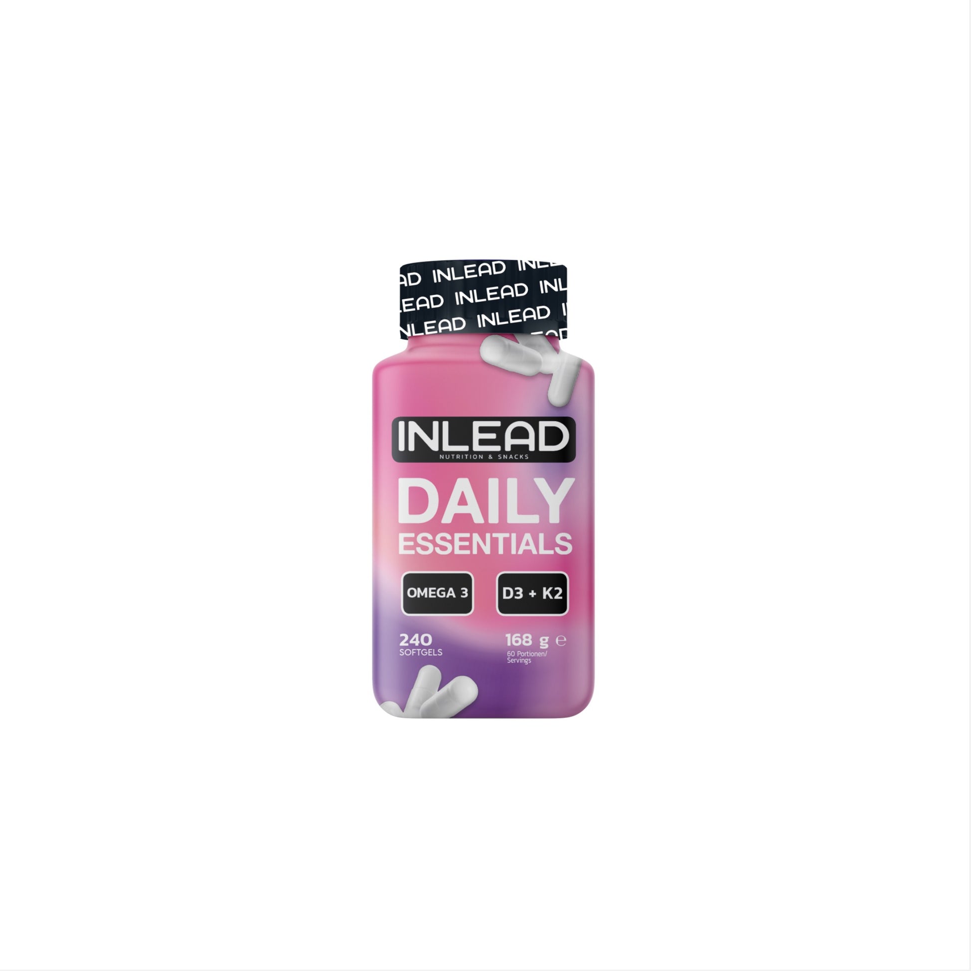 Daily Essentials kombiniert hochwertiges Omega-3 in Triglycerid-Form mit Vitamin D3 und K2 – für maximale Bioverfügbarkeit. Mit 1000 mg EPA, 500 mg DHA sowie 50 µg D3 und 100 µg K2 pro Tagesdosis unterstützt das All-in-One-Supplement gezielt Herz, Gehirn, Immunsystem und Knochengesundheit. Eine smarte Komplettlösung für deine tägliche Nährstoffversorgung – ohne separate Produkte.